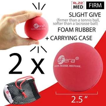 Show more Introducing the remarkable muscle relief balls that transform the way you tackle muscle tension! These premium massage balls are designed for anyone looking to relieve those stubborn knots and tight muscles. Crafted with a perfect balance of firmness, they provide an extraordinary experience unlike any other. Whether you prefer a wall or floor-based method for your massage, their versatile design caters to your specific needs. Feel the relief as you target areas like your feet, back, and shoulders.