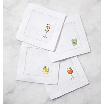 Sferra Aperitivo Embroidered Linen Cocktail Napkins (6x6), Set of Four