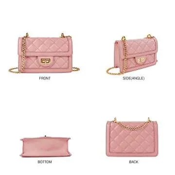 SG SUGU Small Quilted Crossbody Bag, Trendy Designer Shoulder Bag, Phone Wallet Purse for Women (Pink)