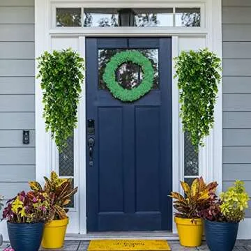 Show more Transform your living space into a serene oasis with our stunning 4-Pack Artificial Hanging Plants. Each vine stretches a generous 30 inches in length, allowing you to create a fuller, more vibrant display that rivals real foliage. Say goodbye to the hassle of plant care; these faux eucalyptus greens boast a 100% lifelike appearance with exceptional attention to detail in shape and color.