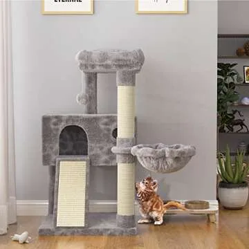 SHA CERLIN Cat Tree 36 Inches Cat Tower with Hammock, Sisal Scratching Post for Indoor Kittens, Small Room, Grey