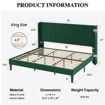 Show moreIntroducing the stunning SHA CERLIN King Size Velvet Bed Frame, a perfect blend of elegance and functionality. This exquisite bed frame is beautifully upholstered in luxurious soft velvet, effortlessly elevating your bedroom decor. The vertical channel tufted wingback headboard adds a sophisticated touch of glamour, making a striking statement in any home. Its king-size dimensions provide ample space for restful nights, while the vibrant green color brings a fresh, modern twist to traditional design.