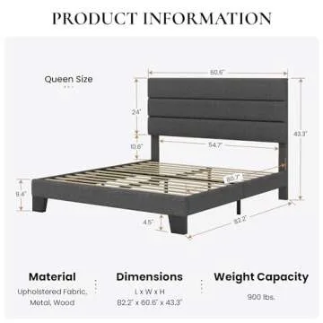 Whether you're moving into a new space or simply upgrading your existing bed, this queen frame is a perfect choice for everyone. Its combination of style, functionality, and ease of assembly makes it an ideal gift for yourself or your loved ones looking to create a cozy and modern sleeping area.