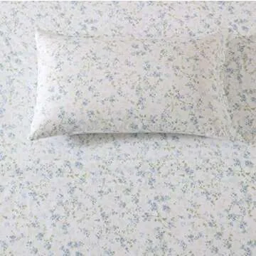 Shabby Chic® - Queen Sheets, Soft & Breathable Organic Cotton Bedding Set, Floral Home Decor with Ruffled Pillowcases (Ella Blue, Queen)