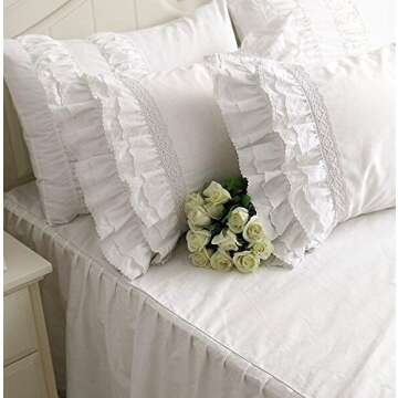 Shabby Vintage White Embroidery Lace & Ruffle Matching Pillowcase Pillow Sham