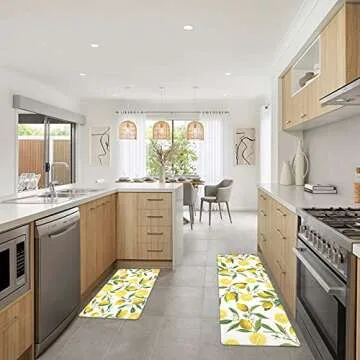 SHACOS Anti Fatigue Lemon Kitchen Rugs Mats Set of 2 Pieces Non Slip Soft Cushioned Standing Mat and Runner Wipeable Floor Mat, 17"x27.5"+17"x47", White