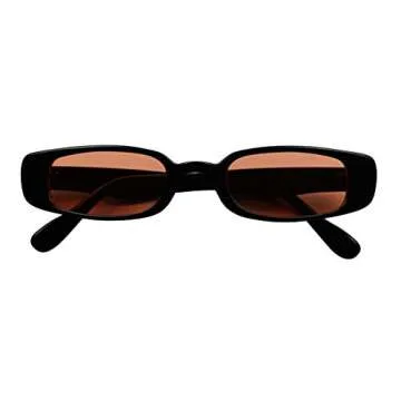 ShadyVEU Slim Classic Rectangular Sunglasses UV Protection 90’s Vintage Small Wide Retro Frame Fashion Shades (Black Frame, Orange Lens)