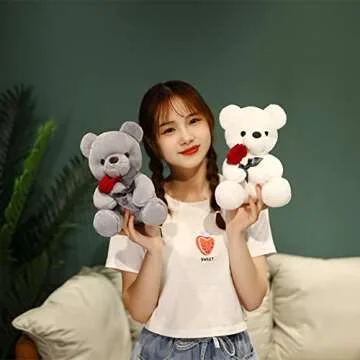 SHAFISH Cute Plush Teddy Bear Stuffed Animal Teddy Bear with Rose Plush Doll Toy Gift for Girlfriend, Valentines Day Gift, Party Decoration(White,23cm/9in)