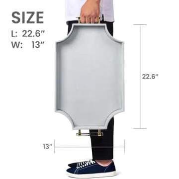 Shagreen Decorative Large Serving Platters Tray with Handles for Coffee Table Decor Modern Elegant Scalloped Ottoman Tray(Ice Blue, 22.6'' × 13'')
