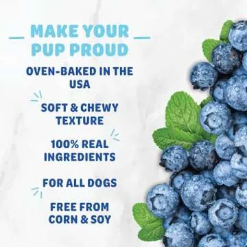 Show more Introducing the Shameless Pets Blueberried Treasure Soft Baked Biscuits, the delightful treats that every dog deserves! These soft-baked biscuits are not just any ordinary snack; they're a treasure trove of health benefits that your furry friend will love. Made with real blueberries and mint, these biscuits are loaded with antioxidants that support your pet's immune system, making treat time both delicious and nutritious. Your dog will be begging for more of these canine delicacies that taste as good as they are beneficial.
