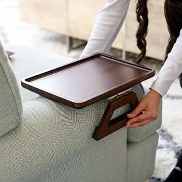Shamrock Home Bamboo Trayble Couch Arm Table, Clip On Tray Sofa Table for Couches. Sofa Arm Tray, Armchair Table for TV Dinners, Remotes, Drinks and Snacks - 13.75 x 9.5inch, Brown