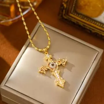 ... Show moreIntroducing the exquisite SHANG JIURUI Luxurious 18k Gold Cross Pendant Necklace, a stunning piece that combines opulence with elegance. Crafted from premium 18k gold, this necklace features a beautifully designed cross pendant adorned with lustrous pearls and a heart-shaped crystal that shimmers with every movement. The meticulous craftsmanship ensures not only durability but also a timeless aesthetic that can be paired with any outfit, making it a versatile accessory for all occasions.