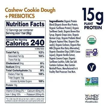 SHANTI BALANCE | Gut Health Cashew Cookie Dough | 17G Plant Based Protein | Organic Gluten Free Superfood | Immunity Boosting | Performance Nutrition | 12 Count, 2 oz Bars