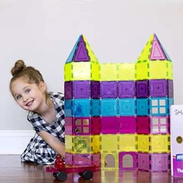 Shapemags 100 Piece 100 Pcs Set Magnet Building Tiles Magnetic Blocks - Neon and Pastel Pink Priness Fairy Set for Girls, Super Strong Blocks for Toddlers and Kids Construction