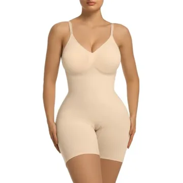 Show moreRevolutionize your wardrobe with the SHAPERX Women's Bra Free Tummy Control Shapewear, a luxurious mid-thigh bodysuit that offers unparalleled comfort and sculpting power. This innovative shapewear is crafted with premium, buttery-soft fabric that caresses your skin, allowing for all-day wear without compromising your style. Say goodbye to cumbersome layers and hello to an effortlessly smooth silhouette: this bodysuit enhances your figure while providing crucial tummy control, core support, and back smoothing, making you feel like a million bucks without breaking the bank!