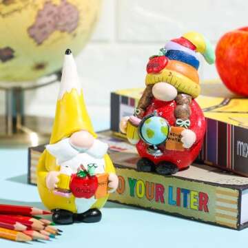 Each gnome holds a whimsical apple, pencil, and globe, symbolizing a love for learning and creativity, which makes them an excellent gift for teachers or students. The exquisite design showcases the skill of professional artisans who have painstakingly crafted these figures from high-quality resin. Each piece is not just a decoration but a work of art that enhances the charm of your decor.