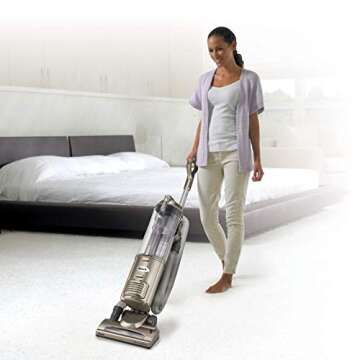 Show moreIntroducing the Shark Navigator Deluxe Upright Corded Bagless Vacuum (NV42), your ultimate cleaning companion! Designed to make cleaning a breeze, this powerful vacuum combines efficiency with innovation for a remarkable cleaning experience. Weighing in at a lightweight 15 pounds, it’s easy to maneuver around your home, while its never loses suction technology ensures consistent performance from the first sweep to the last. With a generous dirt cup capacity of 2.6 quarts, you won’t need to stop frequently to empty out debris, allowing for uninterrupted and thorough cleaning of carpets and hard floors alike.