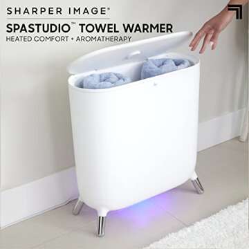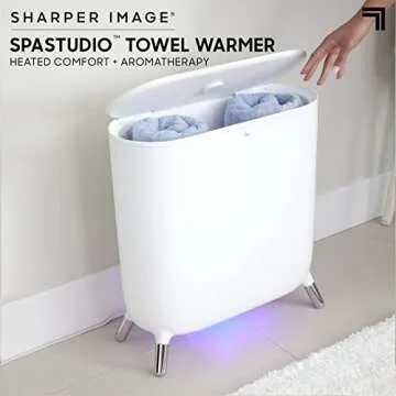 Sharper Image SpaStudio Towel Warmer Holder - Luxury Heated Comfort with Aromatherapy