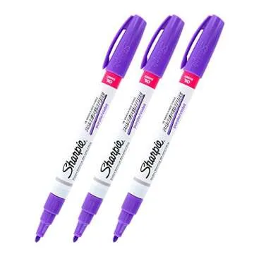 Show more Introducing the Sharpie Oil-Based Paint Marker in Fine Point, a must-have tool for artists, crafters, and DIY enthusiasts alike! This pack of 3 vibrant purple ink markers delivers rich, opaque color that stands out on both light and dark surfaces. With its fine point tip, it allows for precision and detailed work, making it ideal for everything from decorating to labeling. Whether you’re working on a canvas, wood, ceramic, glass, or a variety of other surfaces, these markers provide consistent application, ensuring your creativity flows smoothly.