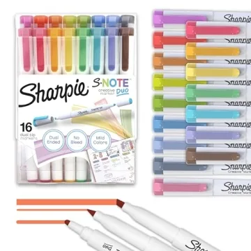 Show moreUnleash your creativity with the SHARPIE S-Note Duo Dual-Ended Creative Marker Set! This vibrant collection combines the best of both worlds, featuring **16 assorted colors** that are perfect for a variety of tasks—from taking notes and underlining important texts to doodling and drawing. With its **dual-tip design**, you can effortlessly switch between the **fine bullet tip** for precise details and the **versatile chisel tip** for bold highlights. These highlighters not only make your work pop but also maintain a clean finish with their **no-bleed ink**, ensuring that your pages look pristine every time you use them.