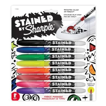 Unleash your creativity with the Sharpie Stained Fabric Markers! This exceptional set of eight markers is designed for fabric lovers and DIY enthusiasts alike, providing you with an array of robust, vibrant colors. Each marker features a smooth brush tip that effortlessly glides across fabric surfaces, allowing you to create stunning designs whether you're customizing clothing, embellishing bags, or embarking on exciting craft projects. These markers offer an impressive palette that includes...
