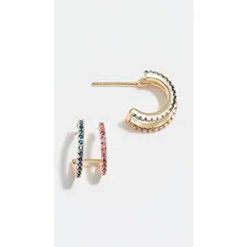 Show moreIntroducing the SHASHI Women's Jamie Hoop Earrings – a stunning jewelry piece designed for those who appreciate elegance and vibrant style. Crafted with a stunning array of multicolor crystals, these earrings exemplify a perfect blend of luxe and playful charm. With a length of 0.25 inches (0.5 cm) and a secure post at the back, they are as comfortable as they are beautiful, making them suitable for any occasion. The elegant yellow gold finish adds a timeless allure, ensuring that these hoops will shine on any outfit, day or night.