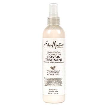 Show moreIntroducing the Shea Moisture 100% Virgin Coconut Oil Leave-In Treat, a revolutionary solution for all hair types! This leave-in treatment offers not just a simple detangling solution but transforms your hair care routine with its lightweight, nourishing formula. Each 8 ounce bottle in this convenient 6 pack is infused with the goodness of 100% virgin coconut oil, known for its exceptional moisturizing and protective properties. Say goodbye to frizz, as this product locks in moisture while ensuring your color-treated hair remains safe from damage. Whether you have curly, straight, or textured hair, this leave-in is designed to enhance your natural beauty without weighing you down.