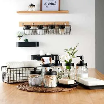 Show more Transform your bathroom into a stylish sanctuary with our comprehensive Bathroom Accessories Set. Crafted from premium glass, this set includes everything you need to elevate your decor—featuring a liquid soap dispenser, a charming toothbrush holder, a handy soap dish, two cute cotton swab holders, a beautiful flower vase, and ingenious toilet paper storage. Each piece is designed with a rustic farmhouse aesthetic, adding a touch of elegance while providing unparalleled functionality.