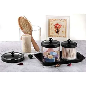 SheeChung Premium Quality Apothecary Jars - Clear Plastic Storage Jars with Rust Proof Stainless Steel Lids - Bathroom Vanity Countertop Organizer Canister Holder House Decor | Set of 3 (Black)