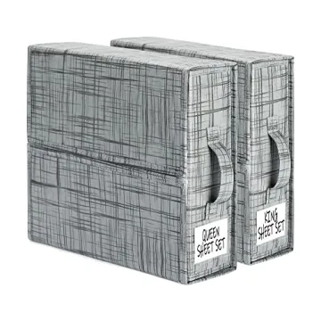 Show more Introducing the **SheetCube Bed Sheet Organizers and Storage 2 Pack**, your ultimate solution for a clutter-free linen closet! With dimensions of **4-1/2"W x 15"D x 12-3/4"H**, these organizers are specially designed to accommodate a variety of bedding items, including sheets and duvet covers. Crafted from eco-friendly materials, they are both stylish and robust, ensuring longevity and protecting your linens. The breathable fabric keeps your items fresh, while the chic pattern grey design adds a modern touch to your storage solutions.