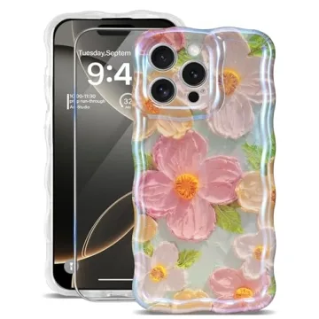 Vibrant iPhone 16 Pro Max Case with 9H Screen Protectors - Wave Bumper Design