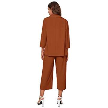 SheIn Women's 2 Piece Outfit Notched Neck 3/4 Sleeve Blazer and Wide Leg Belted Pants Set Brown Small