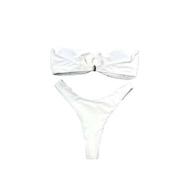 SheIn Women's 2 Piece Ruched O Ring Bathing Suits - Stylish White Bandeau Bikini Set