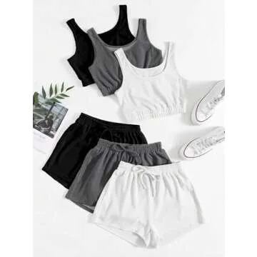 SheIn Women's 6 Pieces Outfits Tank Crop Top and Elastic Waist Shorts Lounge Set Multicolor Blue Small