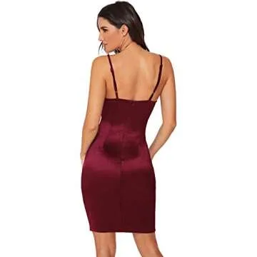 Show more Unleash your wild side with the SheIn Women's Sexy Sleeveless Leopard Print Strappy Bustier Cami Bodycon Dress in a striking burgundy hue. This dress brilliantly marries a bold animal print with a chic bodycon silhouette, designed to contour and flatter every curve. Made from a comfortable, stretchy blend of fabrics, it promises a snug fit that still allows for ease of movement, making it perfect for any social occasion. The strappy bustier design adds a touch of seductive flair, while the sleeveless cut ensures you stay cool and stylish during warm nights out. Available in medium, this dress is a must-have for fashionistas looking to make a statement.