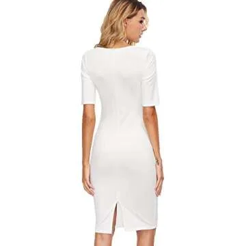 SheIn Women's Short Sleeve Elegant Sheath Solid Pencil Bodycon Dress Medium White