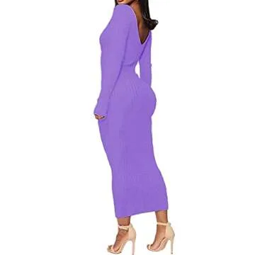 SheKiss Casual Fall Wedding Guest Dresses Boho Ankle Length Knitted Bridesmaid Dress Purple…