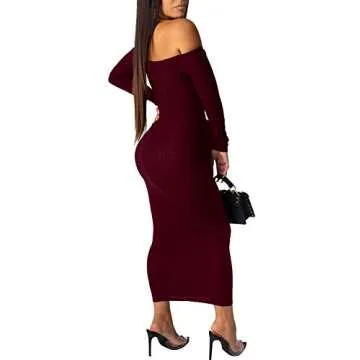 Show moreIntroducing the SheKiss Women's Casual Long Sleeve Ankle Length Sweater Dress, a chic and stylish addition to your wardrobe that perfectly blends comfort and elegance. Crafted from a luxurious knitted fabric, this dress features a trendy off-shoulder design that showcases your collarbone beautifully while providing warmth and coziness for cooler months. The rich wine red color adds an element of sophistication, making it versatile for any occasion, from casual outings to more formal events. Its ankle-length cut and bodycon silhouette flatter all body types, offering a tailored fit that enhances your natural curves.