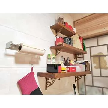 Shelf Brackets 8 Inch 4 Pack Heavy Duty Antique Brass Wall Bracket Victorian Kitchen Decorative Rack Shelves, Shelf Bracket Available in 8 finishes. (4, Antique Brass)