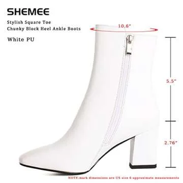 SHEMEE Women's Square Toe Block Heels Booties Chunky High Heeled Side Zipper Ankle Boots Shoes(White,us 9)
