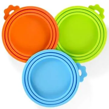 SHENGQIDZ 3 Pack Pet Food Can Covers Universal Can Lids Safe/Silicone Dog&Cat Food Can Lid Covers (green+blue+orange)