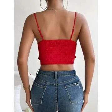 SHENHE Women's Bow Front Sleeveless Spaghetti Strap Shirred Cami Tank Crop Tops Red M