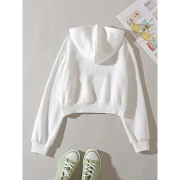 SHENHE Women's Casual Long Sleeve Zip Up Hoodie Jacket Drop Shoulder Crop Tops White M