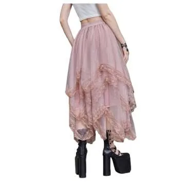 Show moreIntroducing the SHENHE Women's Lace Trim Layered Mesh Tulle Skirt, an exquisite addition to your wardrobe that seamlessly blends elegance with a hint of goth-inspired charm. Crafted from a comfy and lightweight material, this skirt is designed to be both breathable and skin-friendly, making it the perfect choice for all-day wear. The stunning dusty pink color beautifully enhances its layered design, while the asymmetrical cut adds a modern twist to classic elegance. With its delicate lace trim and flowing silhouette, this skirt is not just a piece of clothing — it's a statement that will elevate any outfit.