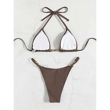 SHENHE Women's Sexy Bikini Sets Ring Triangle Tie Bathing Suits 2 Piece Swimsuits S Brown