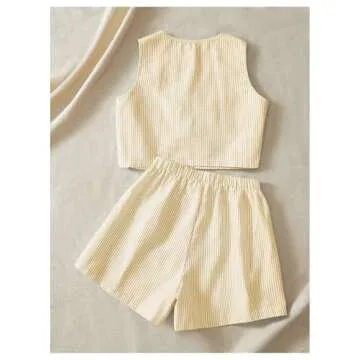 SHENHE Women's Y2k Summer 2 Piece Outfits Striped Tie Front Tank Vest and Shorts Vacation Set Yellow Small