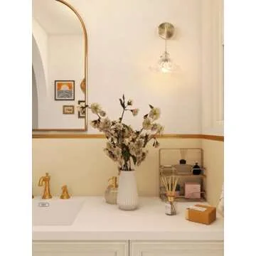 Show moreIntroducing the Shenmoyl Vintage 1-Light Wall Sconces, a stunning blend of function and art that will transform any space in your home. Perfectly designed with intricate details, this wall sconce features an eye-catching clear lotus leaf shade crafted from quality glass, ensuring a warm and inviting glow. Every aspect of this piece—from its elegant retro gold finish to the delicate relief texture—is an embodiment of vintage charm, making it not only a source of lighting but also a captivating decor accent. With dimensions of approximately 7.09 inches arm length and 4.72 x 7.87 inches for the lampshade, this sconces fits various niches in the home, offering versatility without compromising on style.