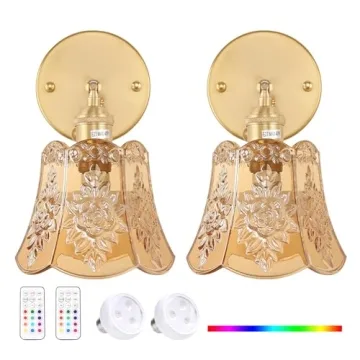 Show moreIntroducing the captivating Shenmoyl Vintage Battery Operated Wall Sconces, a set of two elegant lights designed to enhance the beauty of your home. Perfectly fusing style with functionality, these wireless sconces provide a warm 3000K light and an array of 12 vibrant RGB colors, making them ideal for setting the mood in any room. Whether you're hosting a cozy gathering or enjoying a quiet night in, with just a click of the included remote control, you can easily adjust the brightness and color to create the desired atmosphere. The thoughtfully designed 2-timer shutdown settings (30/60 minutes) allow you to relax without the hassle of turning the lights off yourself, providing you with both convenience and peace of mind.