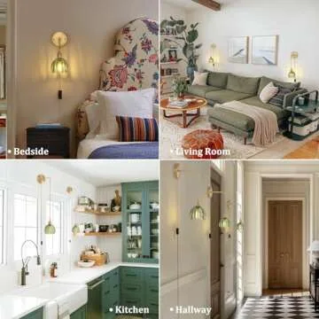 Shenmoyl Vintage Wall Sconce Wall Lamp with Green Tulip Glass Shade Hanging Wall Sconce with 4.9FT Plug in Cord, Modern Wall Lamp Fixtures Decor for Bedside Bedroom Indoor Doorway