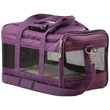 Show moreIntroducing the Sherpa Travel Original Deluxe Airline Approved Pet Carrier, designed with your beloved furry companion in mind. This modern pet carrier not only meets airline regulations but also offers ultimate comfort for your pet while traveling. Crafted in a chic plum shade, it features a patented spring wire frame that makes it easy to adjust, allowing the rear end to conform to under-seat requirements, ensuring your pet can travel by plane or car with style and ease. With a spacious design that accommodates pets up to 16" L and 10" H – or those weighing up to 16 lbs – this medium carrier is perfect for short trips to the vet or exciting adventures. Its versatile design includes mesh windows for ventilation and comfort, side and top entry with secure locking zippers, and a padded adjustable carrying strap for a no-slip grip.